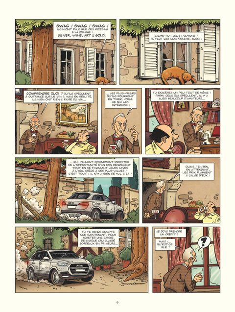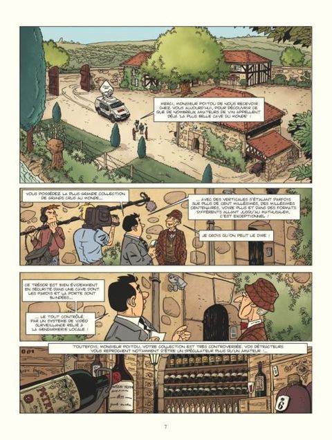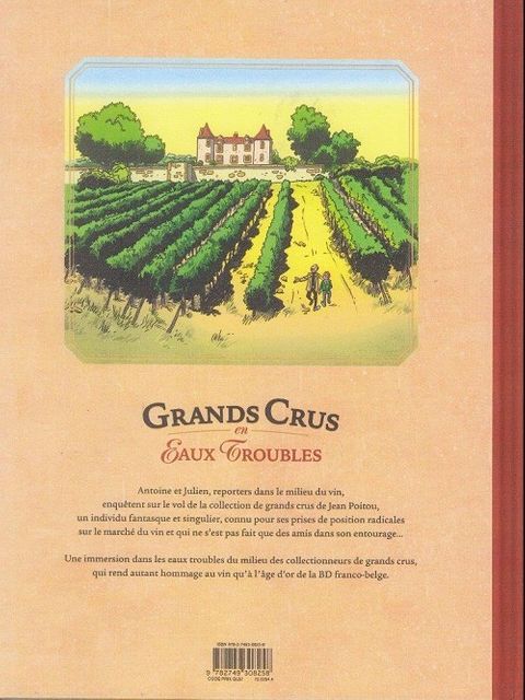 Antoine et Julien travaillent pour un mensuel indépendant, La Feuille de vigne, spécialisé dans le milieu du vin. Leur prochaine enquête concerne Jean Poitou, un célèbre collectionneur de grands crus récemment victime d’un cambriolage. Un individu fantasque et singulier, connu pour ses prises de position radicales, en croisade contre la spéculation à tout crin qui fait monter la côte des grands millésimes à des prix plus qu’exorbitants. Quelqu’un qui ne s’est donc pas fait que des amis... Arrivés chez Poitou, Antoine et Julien découvrent un certain nombre de « bizarreries » qui les incitent à rester pour mener leur propre enquête. Cette nouvelle bande dessinée dédiée au vin nous plonge dans les eaux troubles du milieu des collectionneurs de grands crus. Portée par un duo de reporters et un dessin vintage à la Gil Jourdan, cette aventure est autant une passionnante enquête dans le milieu du vin qu’un hommage réjouissant à l’âge d’or de la BD franco-belge.