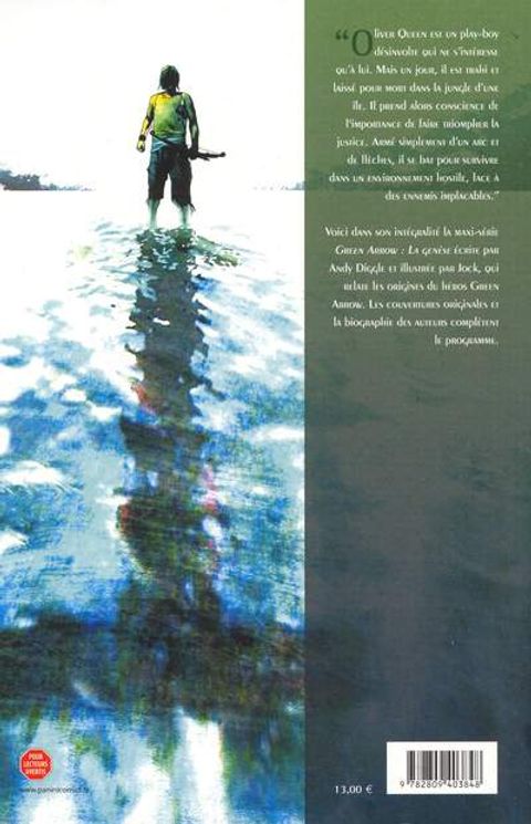 Voici dans son intégralité la maxi-série Green Arrow : la genèse, écrite par Andy Diggle et illustrée par Jock, qui relate les origines du héros Green Arrow. Les couvertures originales et la biographie des auteurs complètent le programme.