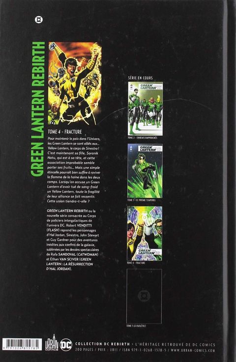 Épisodes Hal Jordan & The Green Lanterns 22 à 29 2 arcs de 4 épisodes pour ce tome —————— Fracture Les Green Lantern arrêtent Bolphunga , mais celui-ci a un moyen de pression sur John Stewart… Venditti met à rude épreuve l’entente entre les Green et les Yellow Lantern dans cet arc ; pour (...) Voir le commentaire