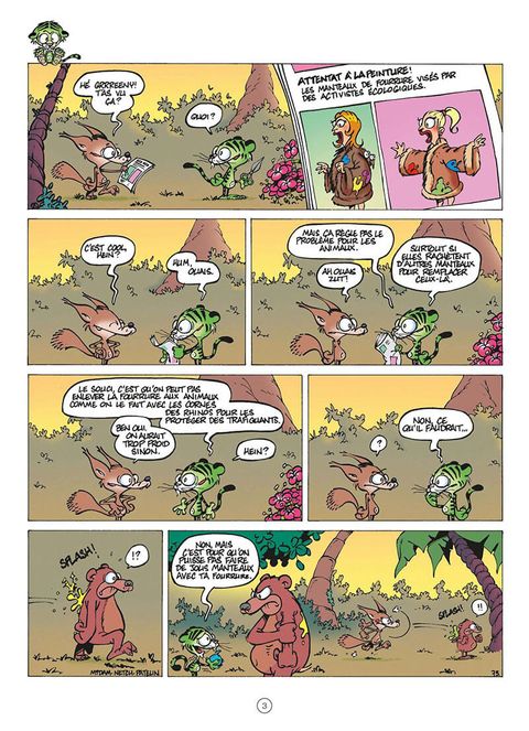 Grrreeny aurait pu avoir une enfance de jeune tigre tout à fait normale. Mais après avoir nagé par hasard dans un lac pollué par la radioactivité, son pelage est devenu définitivement vert. Un accident qui lui a fait prendre conscience des nombreux dangers qui menacent l'environnement. Alors, même s'il a toujours envie de s'amuser avec ses potes et éliminer les braconniers dans sa réserve naturelle, il tente aussi d'agir à sa manière, avec plus ou moins de succès, et de sensibiliser son entourage à l'écologie.