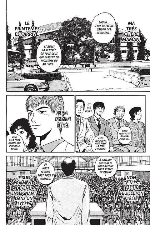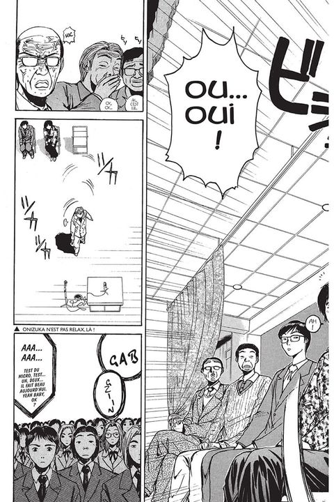 Onizuka est confronté des le début à l'harcelement de sa classe envers lui le prof principal. Au menu photomontage, tentative d'assassinat stupide, élevé qui tente de ce suicider bref plein de chose qui le mettent dans une situation plis que délicate. Notre super prof trouve toujours des idées de génie pour se (...) Voir le commentaire