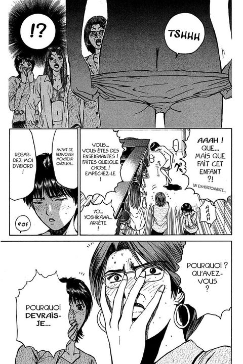 J'ai surkiffé ce tome. On commence avec Onizuka qui se met la bande de Murai dans la poche grave à des méthodes peut conventionnelle. Puis il humilie le prof de sport à des défis qui lui sont imposé. Les scènes sont très drôle et très bien dessinées. Enfin on sent qu'il veut aider (...) Voir le commentaire