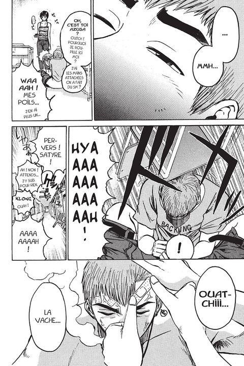 Le neuvième volume de GTO, où il ne sera pas dit que notre héros Eikichi Onizuka passe son temps à ne rien faire, même si ses activités principales consistent à remplacer ses poils pubiens par une perruque, échapper à la mort par empoisonnement, redonner à l’une de ses collègues le goût de son métier pour finir par cultiver son jardin et tomber sur un magot inattendu...