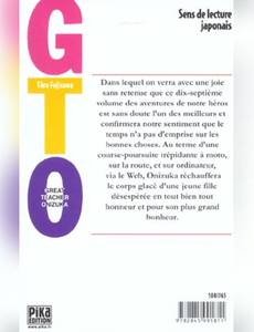 Dans lequel on verra avec une joie sans retenue que ce dix-septième volume des aventures de notre héros est sans doute l'un des meilleurs et confirmera notre sentiment que le temps n'a pas d'emprise sur les bonnes choses. Au terme d'une course-poursuite trépidante à moto, sur la route, et sur ordinateur, via le Web, Onizuka réchauffera le corps glacé d'une jeune fille désespérée en tout bien tout honneur et pour son plus grand bonheur.