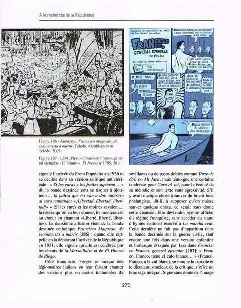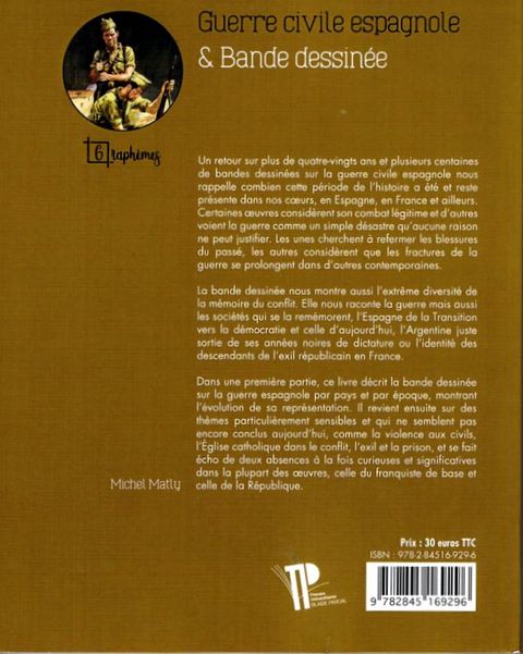 Un retour sur plus de quatre-vingts ans et plusieurs centaines de bandes dessinées sur la guerre civile espagnole nous rappelle combien cette période de l'histoire a été et est restée présente dans nos coeurs, en Espagne, en France et ailleurs. Certaines oeuvres considèrent son combat légitime et d'autres voient la guerre comme un simple désastre qu'aucune raison ne peut justifier. Les unes cherchent à refermer les blessures du passé, les autres considèrent que les fractures de la guerre se prolongent dans d'autres contemporaines. La bande dessinée nous montre aussi l'extrême diversité de la mémoire du conflit. Elle nous raconte la guerre mais aussi les sociétés qui se la remémorent, l'Espagne de la Transition vers la démocratie et celle d'aujourd'hui, l'Argentine juste sortie de ses années noires de dictature ou l'identité des descendants de l'exil républicain en France. Dans une première partie, ce livre décrit la bande dessinée sur la guerre espagnole par pays et par époque, montrant l'évolution de sa représentation. Il revient ensuite sur des thèmes particulièrement sensibles et qui ne semblent pas encore conclus aujourd'hui, comme la violence aux civils, l'Eglise catholique dans le conflit, l'exil et la prison, et se fait écho de deux absences à la fois curieuses et significatives dans la plupart des oeuvres, celle du franquiste de base et celle de la République.