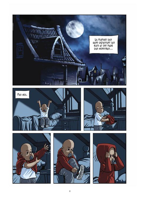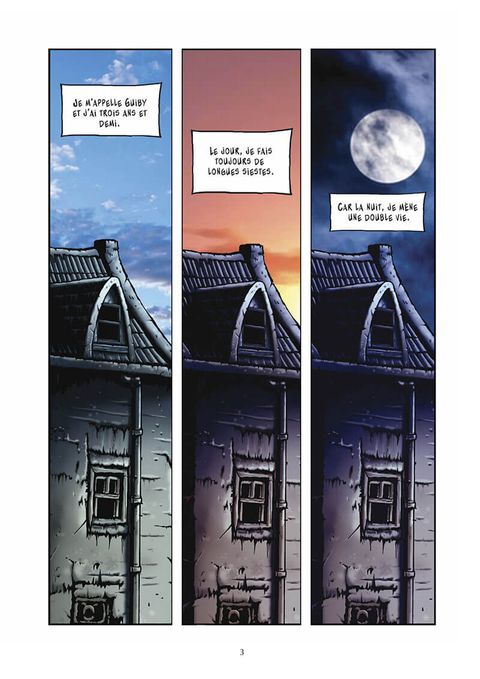Guiby est un petit garçon de trois ans et demi attiré par la nuit. Après s'être lié d'amitié avec le rat Ramirez et avec Gruffus, la créature difforme qui habite son placard depuis le premier tome, Guiby poursuit son exploration des recoins les plus sombres de la ville. Sa tétine vissée à la bouche et son sweater rouge à capuche sur le dos, il se promène sur les toits et dans les égouts en quête d'aventure. N'ayant peur de rien, il se faufile partout et affronte sans frémir les terribles monstres qu'il croise sur son chemin. Superbement illustrée dans les sombres couleurs de la nuit, cette bande dessinée captivera les enfants dès 10 ans. Ils tomberont inévitablement sous le charme de ce super bébé qui vit mille et unes aventures pendant qu'eux dorment paisiblement.