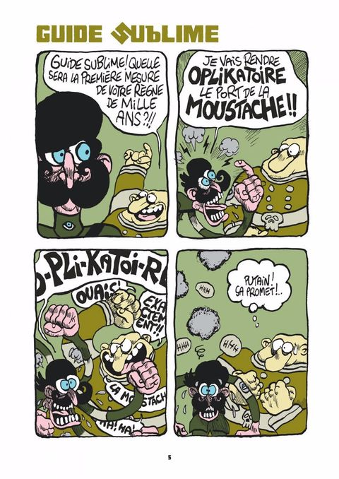 Il se nomme Guide Sublime et règne avec une autorité déconcertante (à défaut d'être incontestée) sur Sublimeland. Névrosé et parano, misogyne et sadique - un psychopathe, quoi ! -, ce leader, qui ferait passer Hitler ou Staline pour des enfants de choeur, avait deux choix : devenir dictateur ou finir dans un hôpital psychiatrique ! Cela donne 164 pages de gags hilarants à déguster par petits bouts, sous peine de devenir fou à son tour !