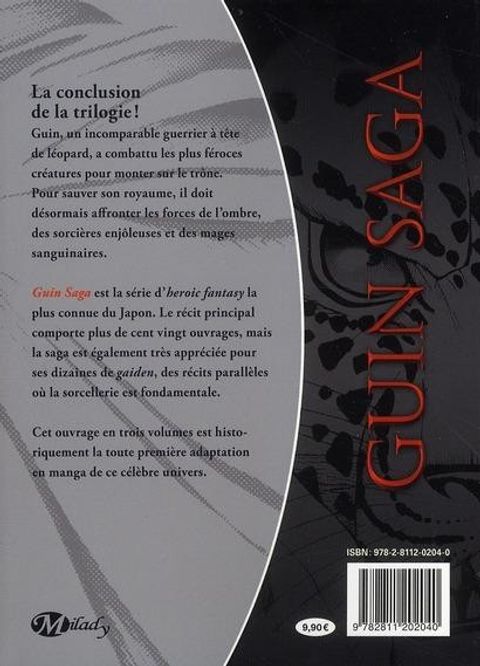 Guin, un incomparable guerrier à tête de léopard, a combattu les plus féroces créatures pour monter sur le trône. Pour sauver son royaume, il doit désormais affronter les forces de l'ombre, des sorcières enjôleuses et des mages sanguinaires. Guin Saga est la série d'heroic fantasy la plus connue du Japon. Le récit principal comporte plus de cent vingt ouvrages, mais la saga est également très appréciée pour ses dizaines de gaiden, des récits parallèles où la sorcellerie est fondamentale. Cet ouvrage en trois volumes est historiquement la toute première adaptation en manga de ce célèbre univers.