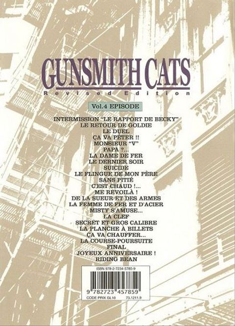 Rally Vincent et Minnie Mey sont les deux plus redoutables chasseuses de primes de Chicago. La première est une experte en armes à feu aux réflexes félins. La deuxième est une gamine malicieuse maniant les explosifs comme personne. Ensemble, elles forment le duo le plus dangereux de toute la profession "Gun Smith Cats" revient dans une édition spéciale (au format plus large) qui contient désormais deux volumes en un seul, ainsi qu'un chapitre inédit dans le tout dernier volume.