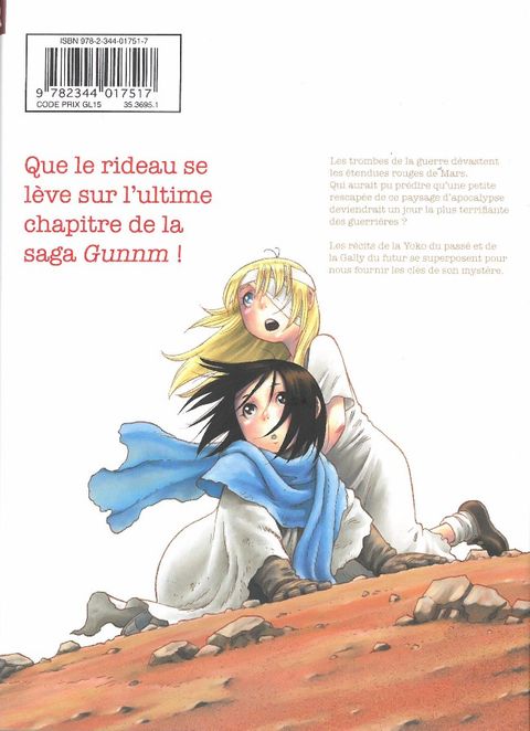 Les trombes de la guerre dévastent les étendues rouges de Mars. Qui aurait pu prédire qu'une petite rescapée de ce paysage d'apocalypse deviendrait un jour la plus terrifiante des guerrières. Les récits de la Yoko du passé et de la Gally du futur se superposent pour nous fournir les clés de son mystère.Que le rideau se lève sur l'ultime chapitre de la saga Gunnm !Troisième saison de la saga, Gunnm Mars Chronicle nous transporte aux sources de l'histoire pour nous dévoiler les origines de Gally. Les lecteurs de la première heure retrouveront le charme de la première série Gunnm, tandis que ceux qui ont suivi Last Order découvriront là le chaînon manquant qui guide la destinée de notre héroïne !