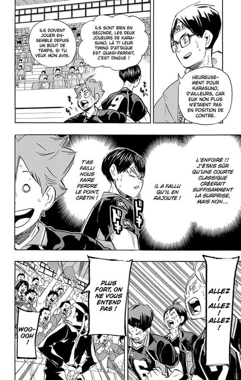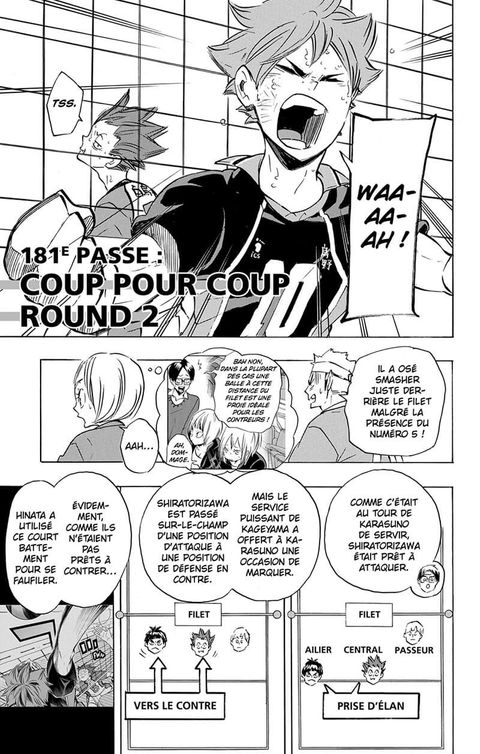 Malgré son pauvre mètre 63, Shôyô se donne à fond dans le sport qu'il aime : le volley-ball ! Son secret pour compenser sa petite taille : une détente phénoménale ! En intégrant le lycée Karasuno, notre rookie est déterminé à prendre sa revanche sur Tobio, qui l'avait humilié au collège. Mais en ouvrant les portes du gymnase, il découvre que son ennemi juré est son futur coéquipier ! Les deux recrues devront jouer en combinaison pour espérer redorer le blason du club, déchu de son rang de champion...