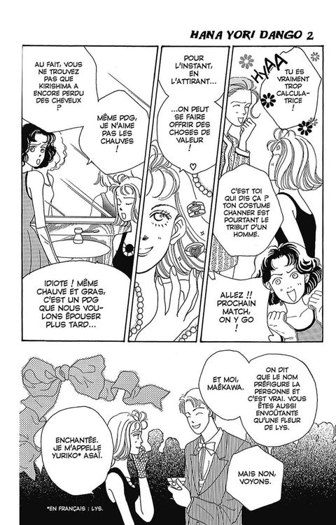 Tsukushi Makino est une jeune lycéenne de 16 ans, issue d'un milieu modeste, qui est parvenue à rentrer dans l'un des établissements les plus cotés du pays. Très vite, elle se heurte à une bande de voyous friqués, les « F4 ». Ces derniers font régner la terreur dans le lycée, en attribuant des « cartons rouges » aux élèves qui ont le malheur de ne pas leur plaire. La pauvre Tsukushi se retrouve persécutée moralement par les quatre garçons. Mais plutôt que de s'aplatir comme les autres et d'attendre que la vague passe, elle décide de leur tenir tête, d'abandonner l'image de la fille sans histoires qu'elle entretenait pour son entrée au lycée pour redevenir la Tsukushi du collège, celle qui ne se laisse pas faire. C'est la guerre ! Au Japon, Hana Yori Dango fait partie de la liste des « 10 manga les plus marquants » pour les Japonais, toutes tranches d'âge confondues !