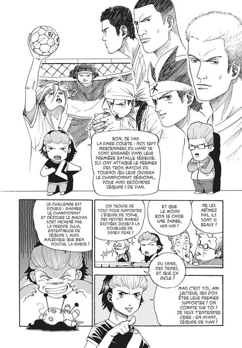 Rien ne va plus pour la nouvelle équipe de Vian, uniquement formée de sportifs dont le seul point commun est... de ne rien connaître au hand ball ! Nos héros doivent désormais se qualifier pour le tournoi régional et la tâche semble très ardue quand les joueurs n'arrivent pas à s'entendre et doutent de leur capacité. Ce tome 3, qui clos le premier arc narratif de la série, met en avant des hommes dos au mur, tiraillés entre leur honneur de sportif et leurs objectifs personnels. Plus que jamais, le sport est le miroir et l'enjeu d'une histoire qui mélange habilement la comédie et la satire sociale du milieu adolescent.