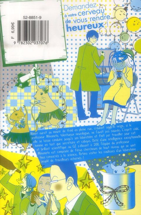 Fauchée comme les blés et sans famille, Minori a plus d'une fois échappé à la mort en plein coeur de l'hiver. Sauvée par le professeur Minamoto qui s'est trouvé sur son chemin, elle va devenir sa secrétaire et. son cobaye ! Ce dernier, super homme de sciences doté d'un Q.I. s'élevant à 200, mène en effet des recherches sur le cerveau tentant de prouver que celui-ci peut contribuer au bonheur. Minori commence alors une nouvelle vie dans un laboratoire truffé de chercheurs déjantés ! Mais le professeur va expérimenter quelque chose de nouveau, moins logique et scientifique que prévu : une attirance pour son nouveau cobaye.