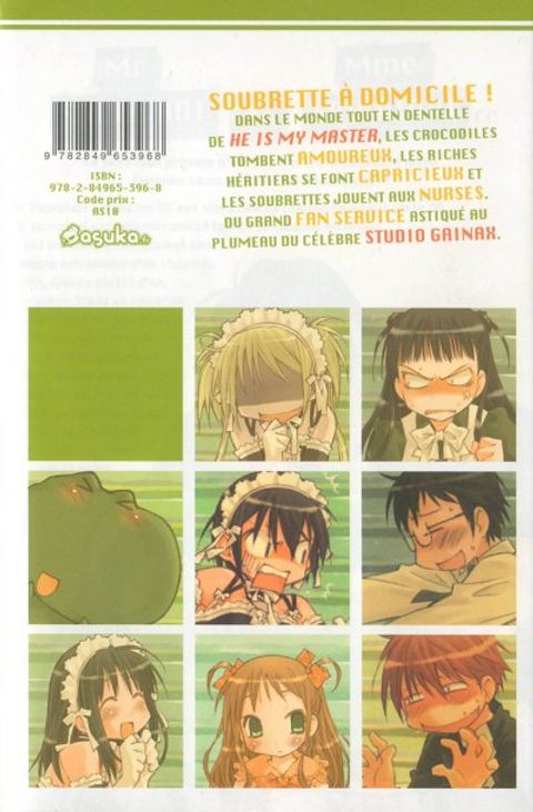 Soubrette à domicile. Dans le monde tout en dentelle de He is my master, les crocodiles tombent amoureux, les riches héritiers se font capricieux et les soubrettes jouent aux nurses. Du grand fan service astiqué au plumeau du célèbre Studio Gainax.