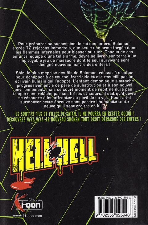 Pour préparer sa succession, le roi des enfers, Salomon, a créé 72 rejetons immortels, que seule une arme forgée dans les flammes infernales peut blesser ou tuer. Chacun de ces enfants, équipé d’une telle arme, devra se livrer sur terre à un impitoyable jeu de massacre dont le seul survivant sera désigné nouveau maître des enfers ! Shin, le plus méprisé des fils de Salomon, réussit à s’enfuir pour échapper à ce tournoi fratricide et est recueilli par un écrivain humain qui l’adopte. L’enfant démoniaque s’attache progressivement à ce père de substitution et à son nouvel environnement, mais ce court moment de répit ne dure pas : traqué sans relâche par ses frères et sœurs, il sait qu’il devra se résoudre à les affronter au péril de sa vie… Pourra-t-il surmonter cette épreuve sans perdre l’humanité toute neuve qu’il sent croître en lui ? Ils sont 72 fils et filles de Satan, il ne pourra en rester qu’un !