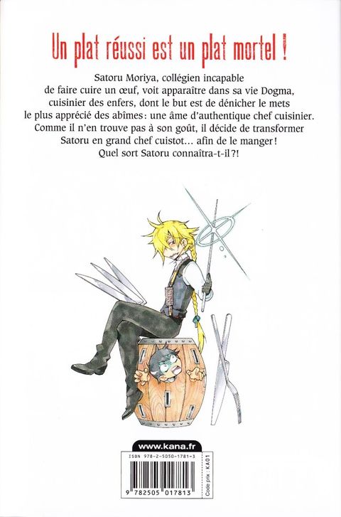 Satoru Moriya, collégien incapable de faire cuire un oeuf, voit apparaître dans sa vie Dogma, cuisinier des enfers, dont le but est de dénicher le mets le plus apprécié des abîmes : une âme d'authentique chef cuisinier. Comme il n'en trouve pas à son goût, il décide de transformer Satoru en grand chef cuistot... afin de le manger ! Quel sort Satoru connaîtra-t-il ?!