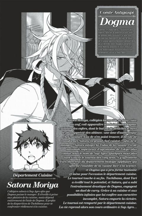 Satoru Moriya, collégien incapable de faire cuire un oeuf, voit apparaître dans sa vie Dogma, cuisinier des enfers, dont le but est de dénicher le mets le plus apprécié des abîmes : une âme d'authentique chef cuisinier. Comme il n'en trouve pas à son goût, il décide de transformer Satoru en grand chef cuistot. afin de le manger ! Quel sort Satoru connaîtra-t-il ?!