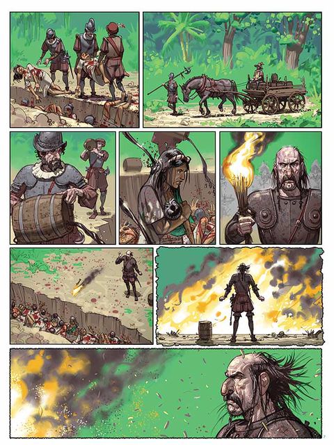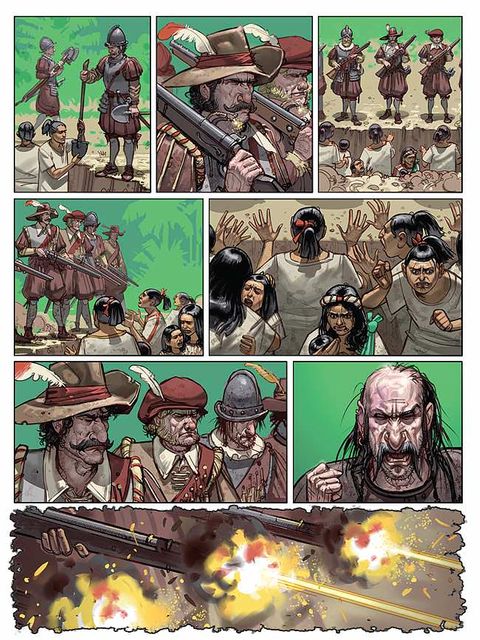 Sur une île tropicale, au lever du jour, un escadron de conquistadors donne l'assaut et tue tous les villageois, des Indiens syyanas. Ce massacre est peut-être la conséquence d'une maladie contagieuse et mortelle présente sur l'île...