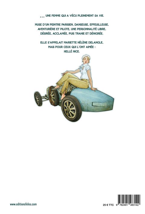 Muse d’un peintre parisien, danseuse, effeuilleuse, aventurière et pilote. Une personnalité libre, désirée, acclamée, puis trahie et dénigrée. Elle s’appelait Mariette Hélène Delangle, mais pour ceux qui l’ont aimée : Hellé Nice. Hellé Nice est une pilote automobile de l’entre-deux-Guerres, née au début du 20ème siècle à Aunay-sous-Auneau. La fin de sa vie, à Nice, en 1984, s’inscrit dans la pauvreté et l’indifférence générale. En contraste avec la flamboyance de ses exploits sportifs et de ses spectacles osés des années folles. Le 2 juin 1929, Hellé Nice avait remporté sa première course de Grand-Prix féminin sur l’Autodrome de Linas-Montlhéry. Puis le 2 décembre, sur le même circuit, elle avait atteint la vitesse de 194 km/h de moyenne sur les 10 tours de l’épreuve. Elle était au volant d’une Bugatti Type 35C. A son palmarès encore : un nouveau record du monde de vitesse féminin officiel l’année suivante. Les grands prix nord-américains et brésiliens, contre des hommes, ne lui faisaient pas peur, bien qu’il s’agît des meilleurs pilotes du moment. Mais après la guerre, elle fut injustement dénoncée comme collaboratrice. Tous ses sponsors et ses amis se détournèrent alors d’elle. Ce biopic offre l’occasion de réhabiliter la mémoire d’Hellé Nice et de revenir sur la remarquable créativité de l’époque, tant artistique que technique. Par ailleurs, le Paris des années folles et les Bugatti sont mis à l’honneur. Le talent artistique de Giuseppe Manunta s’exprime comme jamais dans cet album où les couleurs bleu et sépia s’entremêlent. Les corps féminins se dévoilent, les bolides des années 30 exhibent la puissance de leurs moteurs, leur maniabilité et leur dangerosité pour le plus grand plaisir des spectateurs. Les dandys et les amateurs d’art rivalisent d’imagination pour se mettre en scène dans des décors grandioses.