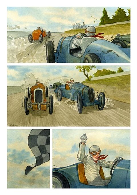 Belle histoire, dessins pour amateurs de vieilles voitures de course et des prémices de l'aviation.