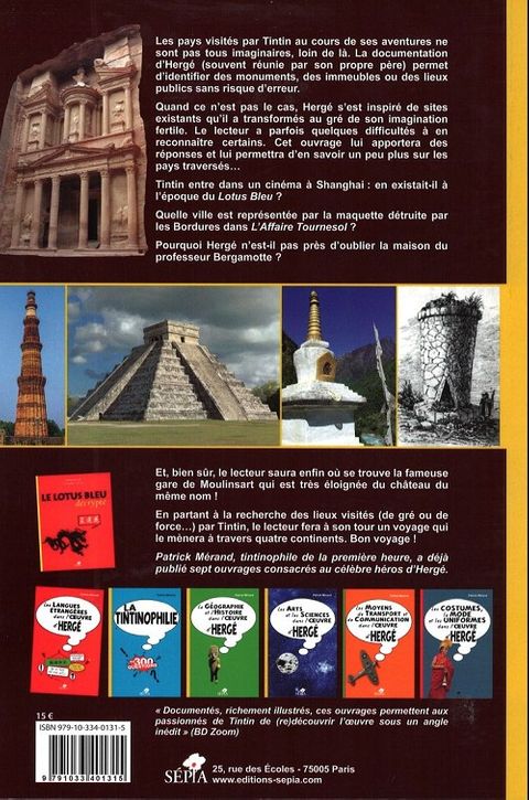 Les pays visités par Tintin au cours de ses aventures ne sont pas tous imaginaires, loin de là. La documentation d'Hergé (souvent réunie par son propre père) permet d'identifier des monuments, des immeubles ou des lieux publics sans risque d'erreur. Quand ce n'est pas le cas, Hergé s'est inspiré de sites existants qu'il a transformés au gré de son imagination fertile. Le lecteur a parfois quelques difficultés à en reconnaître certains. Cet ouvrage lui apportera des réponses et lui permettra d'en savoir un peu plus sur les pays traversés... Tintin entre dans un cinéma à Shanghaï : en existait-il à l'époque du Lotus bleu ? Quelle ville est représentée par la maquette détruite par les Bordures dans L'Affaire Tournesol ?Pourqoi Hergé n'est-il pas près d'oublier la maison du professeur Bergamotte ? Et, bien-sûr, le lecteur saura enfin ou se trouve la fameuse gare de Moulinsart qui est très éloignée du château du même nom ! En partant à la recherche des lieux visités (de gré ou de force...) par Tintin, le lecteur fera à son tour un voyage qui le mènera à travers quatre continents. Bon voyage !