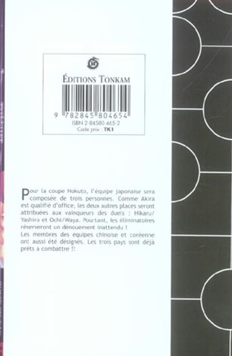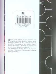 Tonkam - Shonen [Tonkam] Un jour, Hikaru, 11 ans, trouve dans une remise une vieille table de go. Soudain, de celle-ci surgit un fantôme qui y était enfermé : le fantôme de Saï Fujiwara, un génie du jeu de go à l'époque Heïan (VIIIe à XIIe siècle) qui s'introduit dans l'esprit de Hikaru. Acceptant de permettre à Saï de jouer au go contre quelqu'un, Hikaru fait la connaissance de Akira Toya, fils du meilleur joueur japonais et promis lui aussi à un brillant avenir. La passion de Saï et de Akira pour ce jeu entraîne peu à peu Hikaru dans le monde du go... Dess i n : Takeshi OBATA; Scénario : Yumi HOTTA L'Histoire Hikaru no Go est la plus grosse surprise de ces dernières années. À partir d'un sujet banal voire désuet, Yumi HOTTA et Takeshi OBATA signent une épopée profonde et passionnante où les combats se déroulent assis autour du goban ! La série rencontre un succès planétaire et non content d'avoir été adaptée en série télé, elle a aussi assuré le renouveau des clubs de go dans les pays "infectés" par le virus Hikaru. Son ton juste et son trait dynamique font de ce manga une histoire époustouflante et entraînante qui ravira le lecteur, joueur de go ou non !