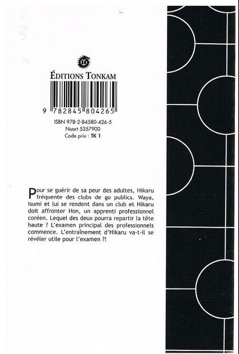 pour se guérir de sa peur des adultes, hikaru fréquente des clubs de go publics. waya, isumi et lui se rendent dans un club et hikaru doit affronter hon, un apprenti professionnel coréen. lequel des deux pourra repartir la tête haute ? l'examen principal des professionnels commence. l'entraînement d'hikaru va-t-il se révéler utile pour l'examen oe!