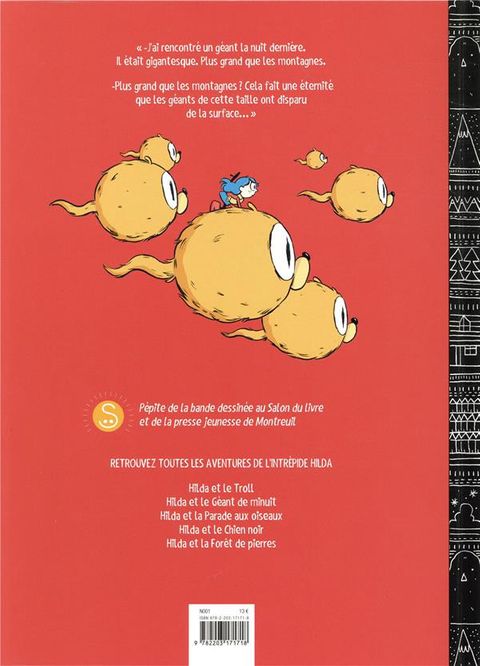 Après avoir été largement plébiscitée par ses lecteurs, Hildafolk est à présent une série ! La collection sera publiée petit à petit, chaque album retraçant une aventure différente. Tout au long de la série, nous suivrons Hilda lors de ses voyages et serons introduits à un monde aux créatures fantastiques et aux paysages enchantés, tandis que notre détective en herbe plongera tête la première dans les nombreux mystères du monde magique qui nous entoure sans que nous puissions le percevoir. Dans Hilda et le Géant de Minuit, la vie de notre héroïne se retrouve sens dessus-dessous lorsqu'elle apprend qu'elle doit quitter les montagnes de son enfance pour le bourdonnement de la mégalopole. En effet, on vient d'offrir à sa mère, une architecte, un poste important à la Nouvelle Oslo, et cette dernière se voit mal refuser une telle opportunité ; d'autant plus que l'expédition d'une heure et demie qu'entreprend Hilda chaque jour dans les montagnes juste pour aller à l'école est loin d'être l'idéal ! Désespérée de faire changer d'avis sa mère, Hilda complote avec les créatures de la mystique Forêt Bleue pour retarder l'inévitable. Mais l'aideront-ils ? Ou bien contrecarreront-ils ses plans ? Et puis qui est ce mystérieux Géant de Minuit ?