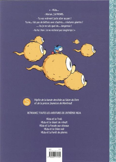 "- Hilda... - Maman, j'ai PROMIS. - Tu vas vraiment juste aller au parc? Tu ne fais pas de bêtises avec d'autres... créatures géantes?... Ou je ne sais quoi de... dangereux? - Ha Ha! Non! Je ne resterai pas longtemps!"