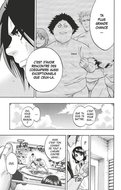 Forcé de se retirer en raison de la blessure qu'il s'est faite en affrontant Tennôji, Hinomaru accepte de rendre visite à un mystérieux médecin dans l'espoir de pouvoir réintégrer la compétition une fois les qualifications terminées. Pendant ce temps, ses compagnons apprennent que leurs adversaires du premier tour du tournoi par équipes ne sont autres que les lutteurs du lycée Kanazawakita, parmi lesquels figure le trésor national Ôdenta ! Oseki et Yuma parviendront-ils à remporter les deux premiers combats de cette rencontre au sommet ?!