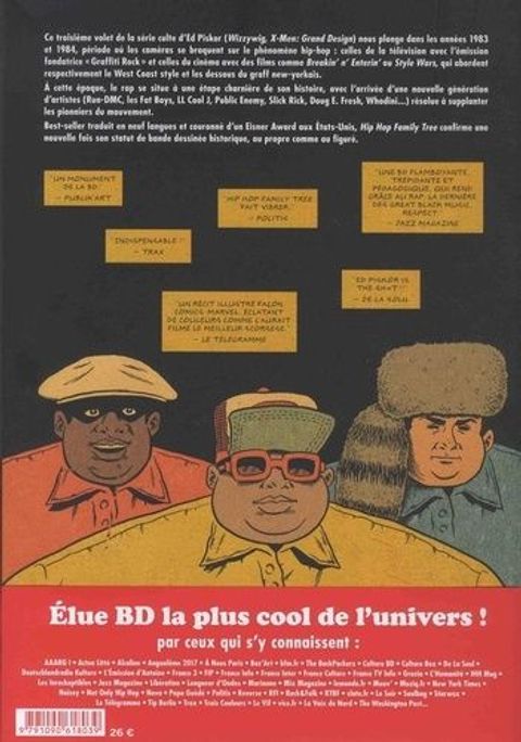 Ce troisième volet de la série culte d'Ed Piskor (Wizzywig, X-Men: Grand Design) nous plonge dans les années 1983 et 1984, période où les caméras se braquent sur le phénomène hip-hop : celles de la télévision avec l'émission fondatrice « Graffiti Rock » et celles du cinéma avec des films comme Breakin' n' Enterin' ou Style Wars, qui abordent respectivement le West Coast style et les dessous du graff new-yorkais. À cette époque, le rap se situe à une étape charnière de son histoire, avec l'arrivée d'une nouvelle génération d'artistes (Run-DMC, les Fat Boys, LL Cool J, Public Enemy, Slick Rick, Doug E. Fresh, Whodini...) résolue à supplanter les pionniers du mouvement. Best-seller traduit en neuf langues et couronné d'un Eisner Award aux États-Unis, Hip Hop Family Tree confirme une nouvelle fois son statut de bande dessinée historique, au propre comme au figuré.