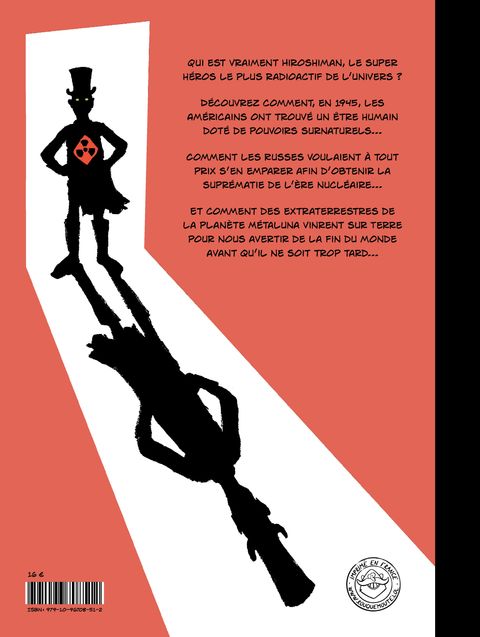 Le héros le plus radioactif de l'univers revient avec Hiroshiman, le surhomme atomique, une BD inédite en couleur dans laquelle Rifo dévoile la genèse d'Hiroshiman. En 1945, les Américains découvrent un être humain doté de pouvoirs surnaturels. Les Russes cherchent à tout prix à s'en emparer afin de posséder la suprématie de l'ère nucléaire. Au même moment, des extraterrestres de la planète Métaluna débarquent sur Terre pour nous avertir de la fin du monde... En somme, un récit dégoulinant d'amour et d'espoir. Dans un passé en pleine mutation, Rifo joue avec les lieux communs du genre post-apocalyptique dans un contexte de seconde Guerre Mondiale pour vous faire rire à vous tenir les côtes. Un album qui met l'international à l'honneur et qui saura ravir les fans de Kubrick, Schwarzy et Manet (oui, les trois ensemble). Devenu introuvable en librairies, les éditions Rouquemoute ont ressuscité Hiroshiman en 2016 avec la publication du volume 1 de L'intégrale d'Hiroshiman, suivi d'un volume 2 en 2018. Créé par Rifo en 1991, Hiroshiman, le surhomme atomique célèbre les 30 ans des aventures abracadabrantesques du seul et unique héros atomique.