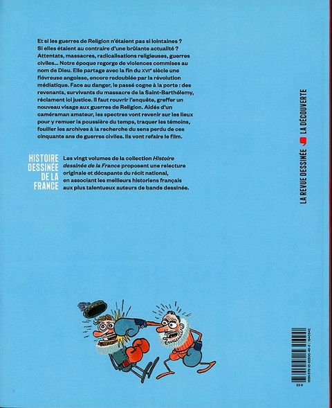 Et si les guerres de Religion (1559-1610) n'étaient pas si lointaines ? Si elles étaient au contraire d'une brûlante actualité ? Attentats, massacres, radicalisations religieuses, guerres civiles... Notre époque regorge de violences commises au nom de Dieu. Elle partage avec la fin du xvie siècle une immense angoisse sur fond de révolution médiatique. Une fois n'est pas coutume, dans ce volume, c'est le passé qui interpelle le présent : des spectres, protestants survivants du massacre de la Saint-Barthélemy, surgissent au beau milieu du tournage de La Reine Margot de Patrice Chéreau et réclament justice... Il faut dénoncer les bourreaux et réhabiliter les victimes ! Figurant sur le plateau, notre héros se met en tête de produire son propre documentaire. Il va " refaire le film " . Parti la fleur à la caméra, accompagné de spectres, son périple le mène à interroger divers témoins de l'époque : Catherine de Médicis, Montaigne, Michel de L'Hospital, Cosme Ruggieri, François d'O ou Henri IV. A travers son enquête, il expérimente de multiples façons de voyager dans le temps, à cheval entre science-fiction et sciences sociales : fantômes débarqués du passé et hantant le présent, potions magiques, rêves, mais aussi fréquentation des archives et des historiens, découverte des journaux d'époque ou balades urbaines. Ses pas le mènent sur les routes de France, celles du xvie comme du xxe siècle, de Paris à Bordeaux à Paris, en passant par Lyon, Aix, Nîmes ou Bayonne. De leur expérience de la guerre civile, mais aussi de la faim et de la peste, ces " tristes hommes d'après 1560 " ont fait une force : car, pour être pleine de Dieu, de miracles et de violence, l'époque invente aussi la liberté de conscience, la pluralité religieuse, apprend à mieux distinguer le politique du religieux. L'absolutisme du xviie siècle s'impose finalement comme solution pour sortir des dissensions religieuses, mais les guerres de Religion inventent le " droit de résistance " , pratiquent le tyrannicide et réfléchissent au type de contrat qui unit le gouvernant et les gouvernés.