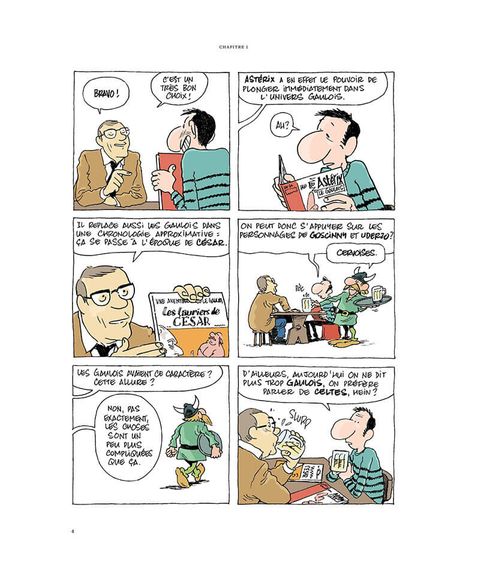 Les Gaulois comme on ne les a jamais vus : par les yeux des deux auteurs mais aussi de César, de Cicéron, du philosophe grec Poseidonios d'Apamée et du druide Diviciac, convoqués pour nous parler de la Gaule qu'ils ont connue. Un voyage dans le temps et dans l'espace, parfois mouvementé, parfois bucolique. Ce livre explique et corrige nos idées reçues sur les Gaulois. César et Poseidonios, représentants respectifs de la Grèce et de Rome s'affrontent sur l'influence considérable que leurs pays auraient exercée sur les Gaulois. On apprendra ainsi ce que les "civilisés" doivent aussi aux "barbares" : de multiples inventions, telles que le tonneau, le matelas de laine, le pantalon, la capuche, le savon, le dentifrice, des armes et des techniques de combat (la tortue), etc. Souvent le voyage prend l'allure d'une enquête visuelle dans le domaine de la religion, dans le monde la guerre et dans l'histoire mouvementée des Gaulois avec leurs voisins sur toutes les rives de la Méditerranée. L'image montre aussi bien les croyances religieuses et funéraires que l'intérieur, voire l'intimité, d'une grande exploitation agricole ou que la vie agitée des hommes politiques dans leurs assemblées.