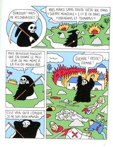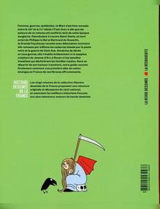 Famines, guerres, épidémies : la Mort s'est bien amusée entre le XIIIe et le XVe siècle ! C'est donc à elle que les auteurs de ce volume ont confié le récit de cette époque sanglante. Déambulant à travers Saint-Denis, où sont enterrés Philippe le Bel et Bertrand du Guesclin, la Grande Faucheuse raconte avec délectation comment elle ramassa par millions les cadavres laissés par la peste noire et la guerre de Cent Ans. Amatrice de décès en tous genres, elle n'oublie évidemment ni le supplice crépitant de Jeanne d'Arc à Rouen ni les batailles intestines qui déchirèrent les familles royales. Sans se départir de son humour tranchant, notre guide raconte finalement comment une première idée de nation émergea en France de ces féroces affrontements.