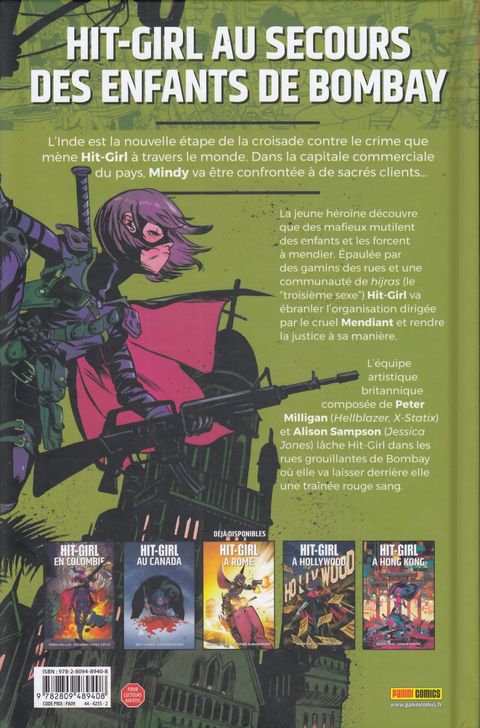 Lorsque Mindy arrive en Inde, elle découvre qu'un gang mutile des enfants pour les forcer à devenir des mendiants. Hit-Girl va alors se lancer dans une traque sanglante pour les venger. C'est le dernier tome du tour du monde de Hit-Girl avant une rencontre explosive avec Kick-Ass. Il est signé par Peter Milligan (Hellblazer, Venom vs Carnage).