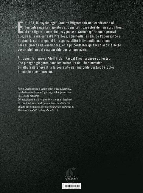 À travers la figure d'Adolphe Hitler, Pascal Croci propose au lecteur une véritable plongée dans les noirceurs de l'âme humaine. Un album dérangeant, fort, à la poursuite de l'indicible et du petit rien qui fait basculer un monde dans l'horreur.