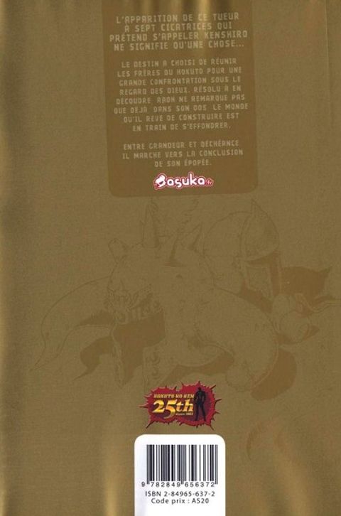 L'apparition de ce tueur à sept cicatrices qui prétend s'appeler Kenshirô ne signifie qu'une chose : le destin à choisi de réunir les frères du Hokuto pour une grande confrontation sous le regard des Dieux. Résolé à en découdre, Raoh ne remarque pas que déjà, dans son dos, le monde qu'il rêve de construire est en train de s'effondrer. Entre grandeur et déchéance, il marche vers la conclusion de son épopée.
