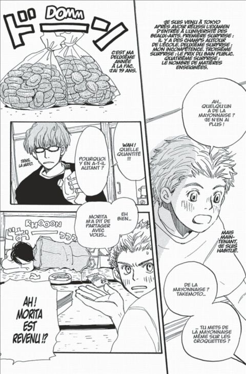Morita et Takemoto, tous deux étudiants fauchés d'une université des Beaux-Arts, louent chacun une petite chambre dans une maison sans salle de bains mais où ils coulent des jours heureux. Un jour, la jeune Hagumi Hanamoto fait son entrée dans la même école d'art et va bouleverser leur quotidien...