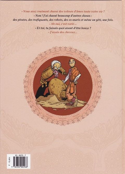 Sous l'oeil vigilant du Grand Bonze Hûr, un jeune moine naïf, s'emploie à numériser l'esprit de Maître Tantô, cuisinier réputé de Hong Kong, pour lui assurer l'immortalité dans un paradis virtuel. Soudain, surgit un pirate ; fi ché au Black Karma en raison d'un savoir faire aussi sublime que dangereux, nul doute qu'il souhaite s'emparer des recettes les plus létales. Asservir la population grâce à une soupe de nouilles, c'est le rêve de Peh Dô Duh, le déséquilibré. Contre de si mauvaises intentions, seule Mamie Tchou est de taille à lutter ! Toute, toute petite grand-mère aux savoirs martiaux oubliés, ses services sont onéreux mais effi caces. Ni Zaï, ni Hûr, qui maîtrisent à peu près l'univers virtuel, ne sont bâtis pour le monde réel. La facétieuse mamie Tchou, garante de l'ordre du tout Hong Kong ?!