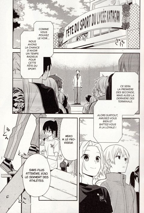 La fête du sport bat son plein et même Sengoku y participe! Hori et Miyamura sont dans des équipes opposées, tandis que Sakura encourage Toru. Tanihara souhaite se racheter auprès de Miyamura, rongé par des remords à son égard. C'est toujours mignon et léger, sans prise de tête! C'est ce qui rend (...) Voir le commentaire