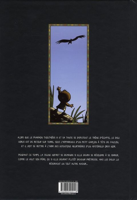 Alors que le pharaon Toutmosis et sa tante se disputent le trône d'Egypte, le dieu Horus est de retour sur terre, sous l'apparence d'un petit garçon à tête de faucon, et il doit se mettre à l'abri des intentions meurtrières d'un mystérieux oryx noir. Pendant ce temps, la jeune Nofret se demande si elle devra se résoudre à se marier, comme le veut son père, ou si elle devrait plutôt devenir prêtresse. Mais les dieux lui réservent un tout autre avenir...