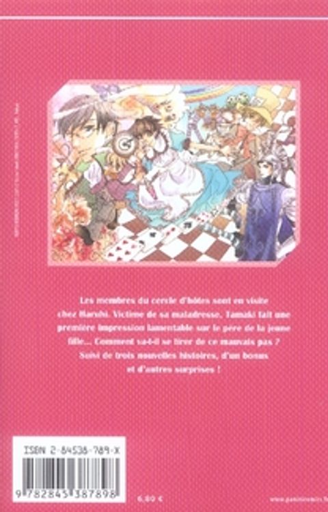 les membres du cercle d'hôtes sont en visite chez haruhi. victime de sa maladresse, tamaki fait une première impression lamentable sur le père de la jeune fille. comment va-t-il se tirer de ce mauvais pas ? suivi de trois nouvelles histoires, d'un bonus et d'autres surprises !.