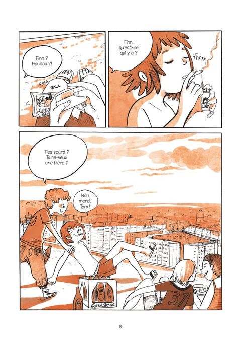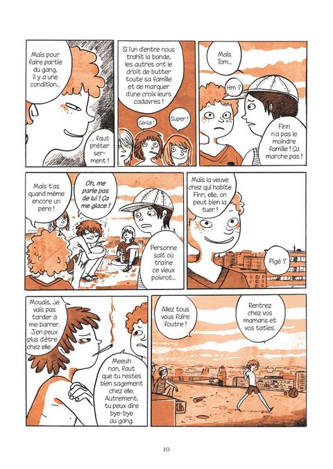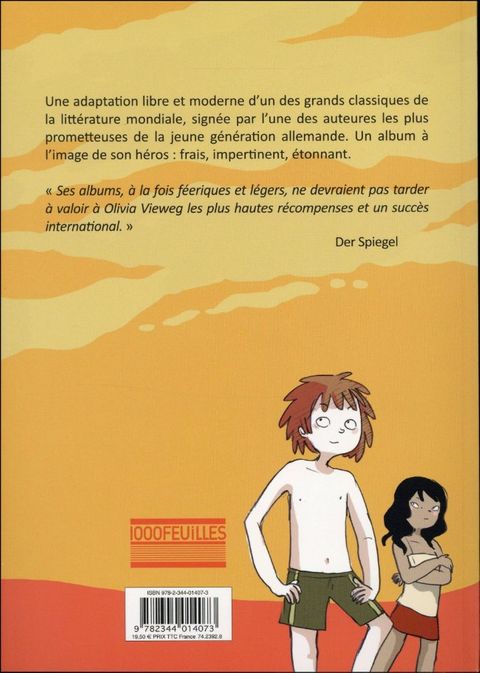 À Halle-sur-Saale en Allemagne, Huck Finn mène une vie sauvage avec ses copains. Mais la nuit, il rentre régulièrement chez sa mère adoptive, une veuve qui s'occupe bien de lui et essaie malgré tout de le « civiliser. » Mais Finn, épris de liberté, a d'autres objectifs : il est clair qu'il ne va pas rester encore très longtemps ici... Tout le monde connait Les Aventures de Huckleberry Finn, chef d'oeuvre de la littérature américaine. Olivia Vieweg, l'une des stars montantes de la bande dessinée allemande, nous propose une adaptation contemporaine du grand classique de Mark Twain, en le transposant dans l'Allemagne d'aujourd'hui. Un roman graphique frais, sauvage et surprenant.