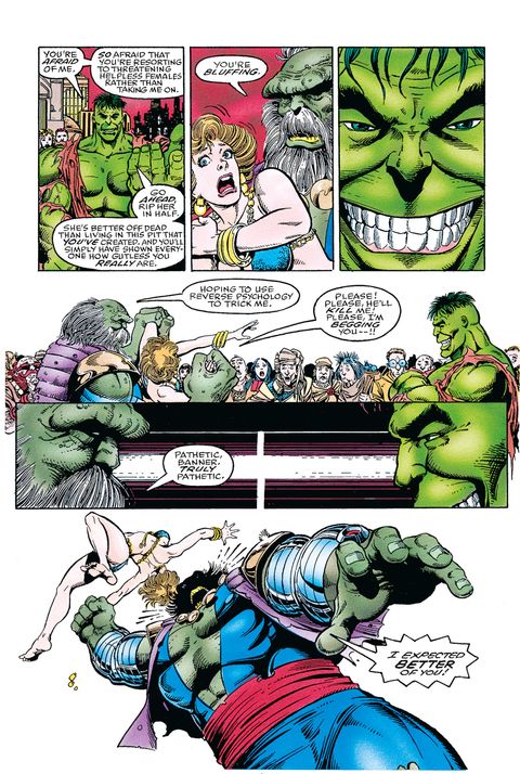 Hulk est en paix avec Banner et ils ont adopté une forme commune, celle d'un Hulk intelligent. Mais lorsqu'il est projeté dans un futur impossible, Hulk s'aperçoit à quel point il ne sera jamais débarrassé du monstre qui est en lui. Il découvre en effet un monde apocalyptique, sur lequel règne un tyran nommé le Maestro, qui n'est autre que... lui-même ! La période la plus mémorable pour Hulk est très certainement la décennie où Peter David tenait les rênes de sa série, comme en atteste le succès des tomes de HULK : L'INTÉGRALE consacrés à cette période. Futur imparfait est l'une des sagas les plus iconiques de cette ère. Une caractéristique qui fait de ce récit complet un atout essentiel pour la collection MARVEL MUST-HAVE !