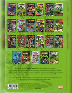 Hulk n'est pas content... ce qui laisse deviner beaucoup d'action ! Le Géant Vert affronte Boomerang, un androïde tueur de Hulk et l'Abomination, son ennemi juré, qui apparaît ici pour la première fois. Et ce n'est que le début ! Hulk va affronter les plus puissants héros de l'univers Marvel : le Silver Surfer, Namor et le Puissant Thor. Les fans de Hulk ont de quoi devenir verts de plaisir ! Après les nombreux albums consacrés à Miss Hulk le mois dernier, voici que Bruce Banner a droit à deux nouvelles INTÉGRALES le même mois ! En marge de la période Peter David, nous revenons aux origines du personnage avec ces épisodes "vintage" signés Stan Lee !