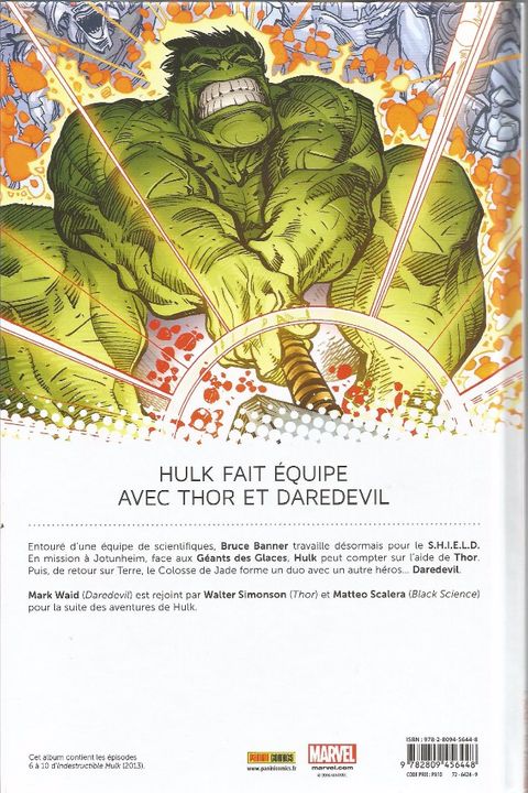 Bruce Banner, désormais à la tête d’une équipe scientifique du S.H.I.E.L.D, emmène son groupe en mission dans le royaume du froid : Jotunheim. Les Géants du froid prévoient d’envahir la Terre et Bruce doit laisser à Hulk le soin d’empêcher ce désastre. Heureusement, il peut compter sur l’aide de Thor, le Dieu du Tonnerre, qui pourtant ne semble pas se souvenir de Hulk... (Contient les épisodes US Indestructible Hulk 6-10, publiés précédemment dans les revues AVENGERS UNIVERSE 6-10)