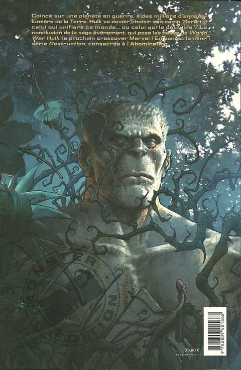Coincé sur une planète en guerre à des milliers d'années-lumière de la terre. Hulk va devoir choisir son camp. sera-t-il celui qui unifiera ce monde... ou celui qui le détruira ? la conclusion de la saga évènement, qui pose les bases de world war hulk, le prochain crossover marvel ! en bonus, la mini-série destruction consacrée à l'abomination.