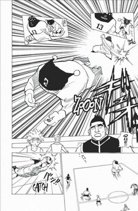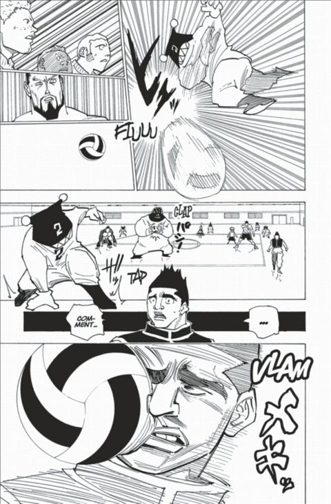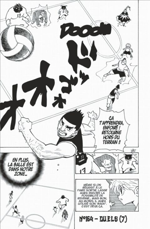 "Un coup pour rien! Pierre! Papier! Pierre!!!". Afin d'obtenir la carte de "la côte d'un Tsubo", nos amis ont commencé une partie de ballon prisonnier. Face à Laser qui multiplie de terribles attaques et leur montre la différence de force qui existe entre eux, Gon, très énervé, lance son attaque secrète!!